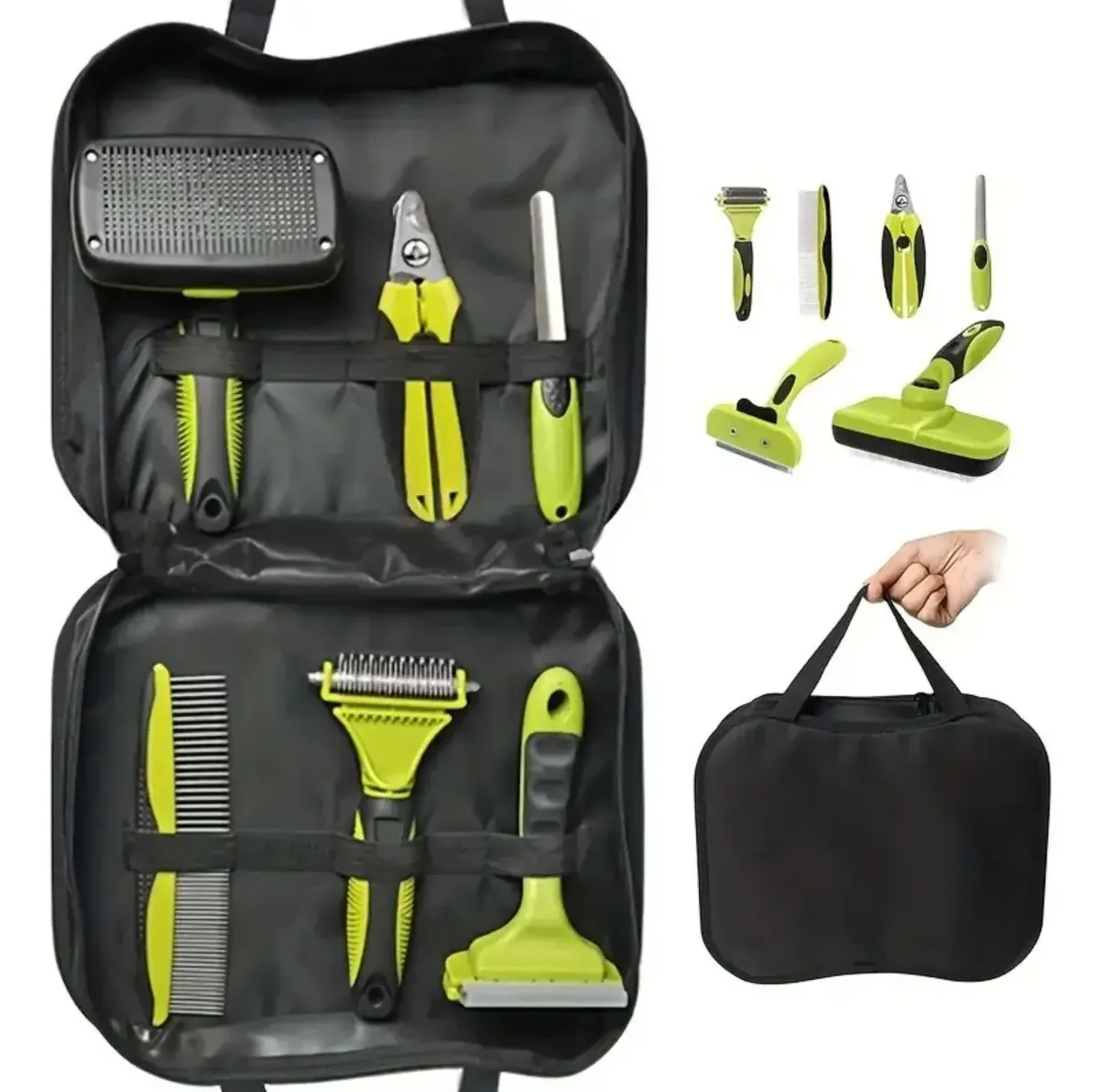 El cepillo está diseñado para prevenir la irritación de la piel de las mascotas, para ello cuenta con púas flexibles de acero inoxidable, que permitirá quitarle el 95 % del pelo muerto a la vez que recibe un agradable masaje. – Material de acero inoxidable de alta calidad, tamaño mediano-grande 19 * 5 cm. El peine está dividido en dos zonas con distinta separación de los dientes, la mayor es ideal para desenredar pelos de mascotas con mucha densidad y la menor para peinar o alisar. La terminación de los dientes es redondeada. – La hoja de corte de acero inoxidable le permitirá un corte preciso y seguro. Es más fácil de usar que unas tijeras para perros tradicional, ya que el mango ofrece un mejor agarre. Además, cuenta con un espaciador de seguridad para evitar que las uñas se corten en exceso. – Estos cepillos para perro y gato puede ajustar y mantener a su mascota sana y limpia mediante la eliminación de los nodos de profundidad, los pelos muertos y suciedad, mejorar la salud y el brillo del cabello. La parte con los dientes grandes atrapa los pelos desprendidos, la parte más gruesa también elimina la capa inferior y limita la pérdida de cabello alrededor de la casa. Reduce eficazmente la caída de cabello hasta un 90%. Características: – El peine de aseo para mascotas está hecho de material de alta calidad, que no es fácil de romper, se puede usar durante mucho tiempo y es duradero. – El cepillo de peluquería para perros y gatos está diseñado con un mango cómodo y ergonómico con textura antideslizante para reducir la presión de la mano. – El peine de aseo de mascotas maneja fácilmente el pelo suelto de las mascotas, la suciedad y le brinda masaje al pelaje de tu mascota. – Después de que el cepillo para mascotas haya cepillado el pelo, presione el botón de limpieza para eliminar el pelo restante del cepillo. Limpia en segundos, lo que ahorra mucho tiempo y esfuerzo en el aseo y la limpieza. Cuando el pelo de la mascota es largo y fácil de anudar, es más efectivo usar este peine de aseo primero. Apto para mascotas peludas como perros, gatos o conejos. FICHA TÉCNICA Alto: 23 cm Ancho: 30 cm – Abierto: 49 cm Profundidad: 6.7 cm Material: Plástico / TPR / Metal Calidad 100% Garantizada. Realizamos Envíos a toda Colombia TIENDA VENTASEXPRESS2010 ENTREGAS RÁPIDAS Garantía de fábrica: 30 días