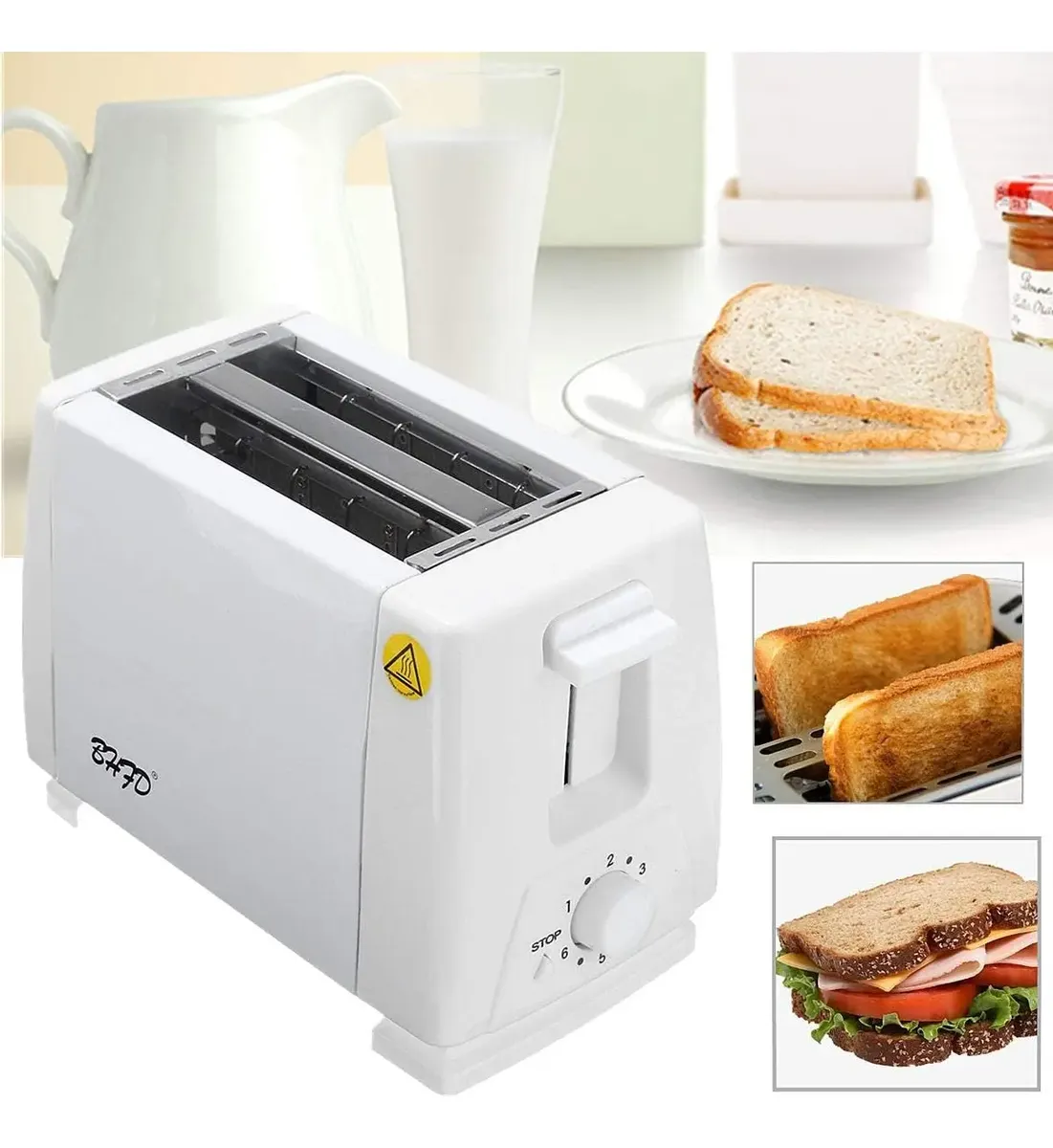 – Tostadora de plástico con acero inoxidable brinda protección contra sobrecalentamiento, cuenta con bandeja extraíble en la parte inferior. -Doble Ranura Ancha: ¿Antojo de tostadas gruesas o bagels jugosos? Las ranuras dobles extra anchas pueden acomodar una variedad de tamaños de pan, brindándote la libertad de disfrutar tus alimentos favoritos sin limitaciones. -Tecnología de Tostado Preciso: Deja atrás las conjeturas al tostar. El tostador está equipado con tecnología de tostado avanzada que te permite ajustar el nivel de dorado con exactitud. Desde un suave dorado hasta un crujiente dorado oscuro, ¡tú tienes el control! -Funciones: ¿Prefieres descongelar antes de tostar? ¿O mantener tus tostadas calientes mientras te preparas para el día? Con las funciones de descongelado y mantener caliente, satisfarás todas tus necesidades. -Diseño Moderno e Intuitivo: El acabado elegante en acero inoxidable complementará cualquier estilo de cocina contemporánea. Los controles intuitivos y la pantalla LED fácil de leer hacen que su uso sea sencillo y placentero. -Apagado Automático de Seguridad: Tu seguridad es lo primero. El tostador se apagará automáticamente si algo se atasca, evitando posibles situaciones peligrosas. -Construcción Duradera: Diseñado para perdurar, este tostador está confeccionado con materiales de alta calidad que garantizan su rendimiento a largo plazo. ESPECIFICACIONES CARACTERÍSTICAS Tostador de pan Eléctrico Forma: Rectangular Cantidad: 1 unidad Instrucciones De Cuidado Y Limpieza: Limpiar en seco Cuidados O Recomendaciones: Usar de acuerdo al manual integrado Detalles Tostador Eléctrico: ideal para rebanadas de pan FICHA TÉCNICA Medidas: Largo: 23 cm Alto: 16 cm Ancho: 12.5 cm Material: Plástico ABS + acero inoxidable Calidad 100% Garantizada. Realizamos Envíos a toda Colombia TIENDA VIRTUAL VENTASEXPRESS2010 ENTREGAS RÁPIDAS Garantía de fábrica: 5 días